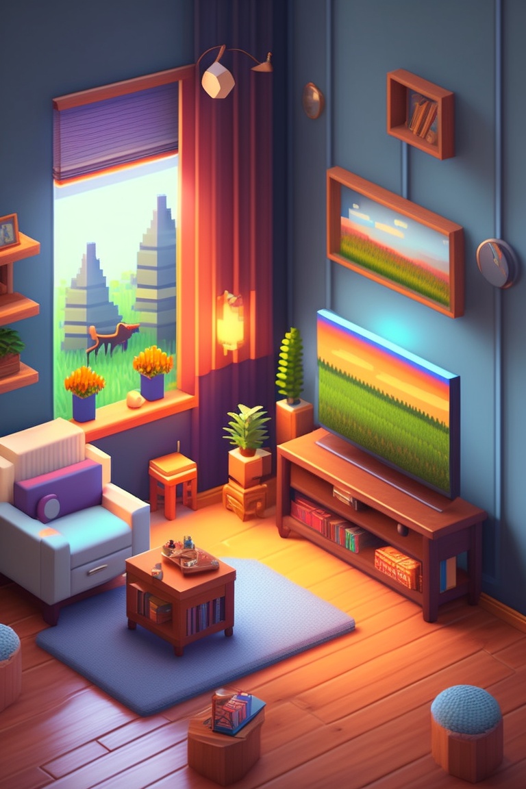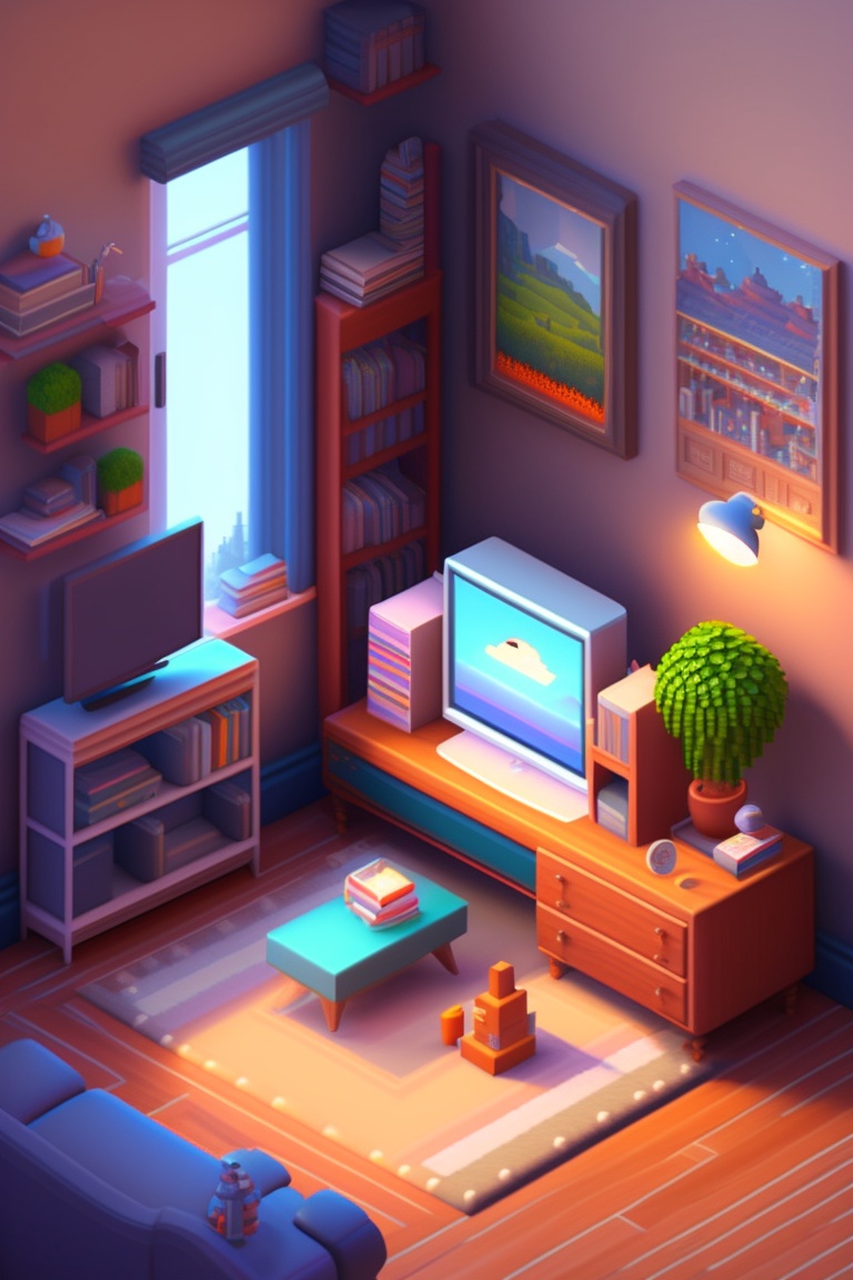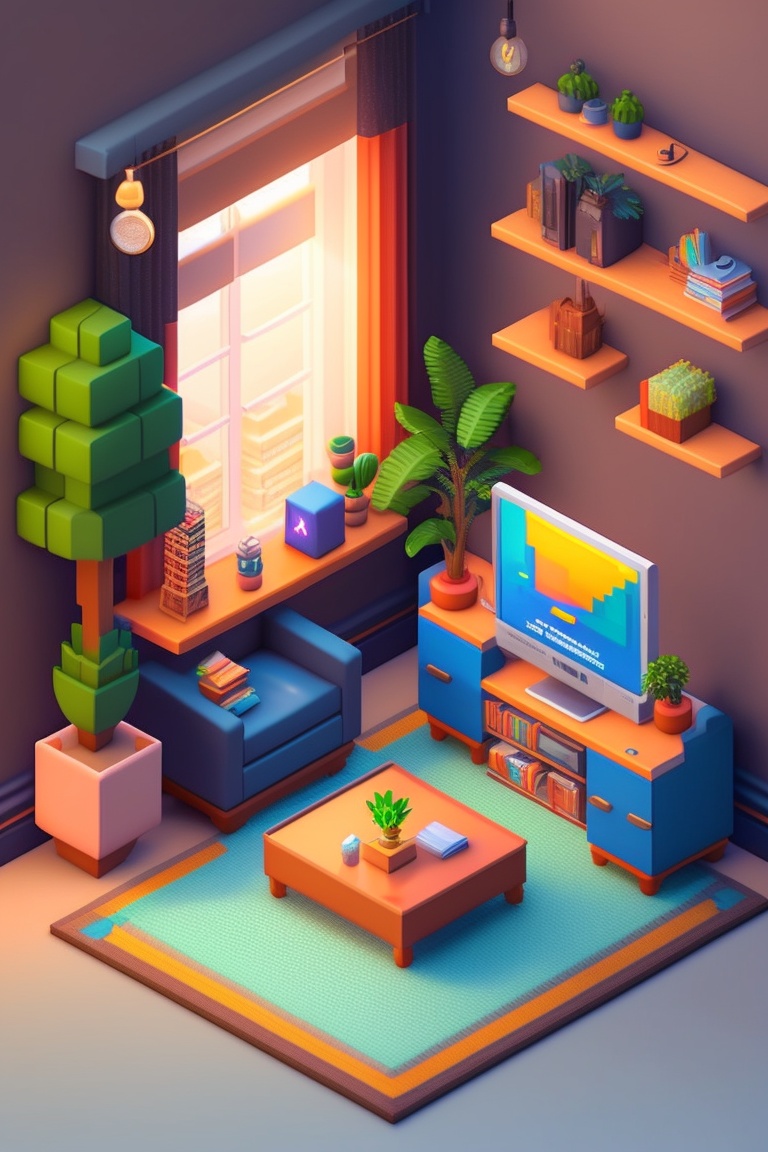 detailed isometric living room